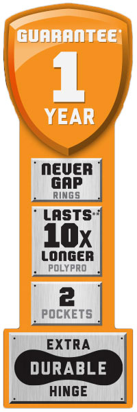 - Features our strongest binder covers and extra durable hinge for years of reliable use; Custom formulated, PVC Free polypro material lasts up to 10x longer than vinyl