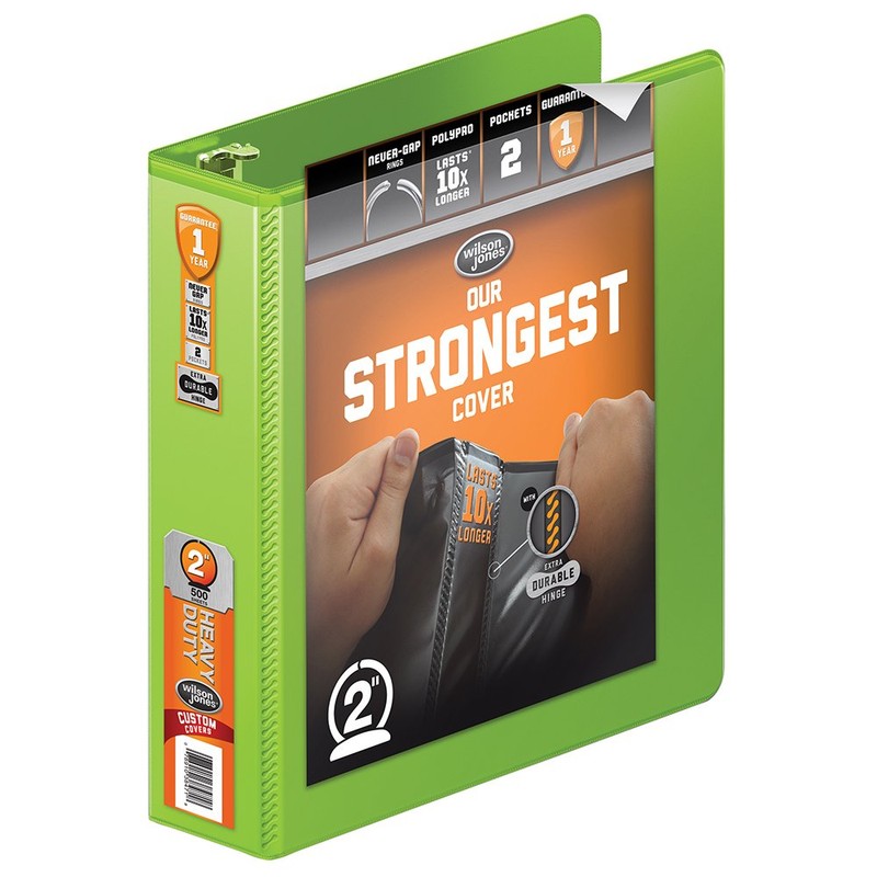 Wilson Jones Heavy Duty Round Ring View Binder with Extra Durable Hinge, 2 Inch, Customizable, Chartreuse (W363-44-376), 1-Pack