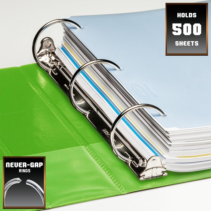 Never Gap Rings prevent papers from accidentally coming loose. All three rings close tightly every time you add or remove a page.