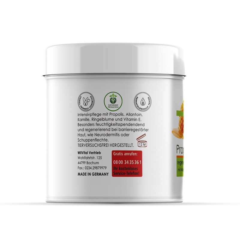 - WilVital Propolis cream is produced in Germany and leaves our house by hand