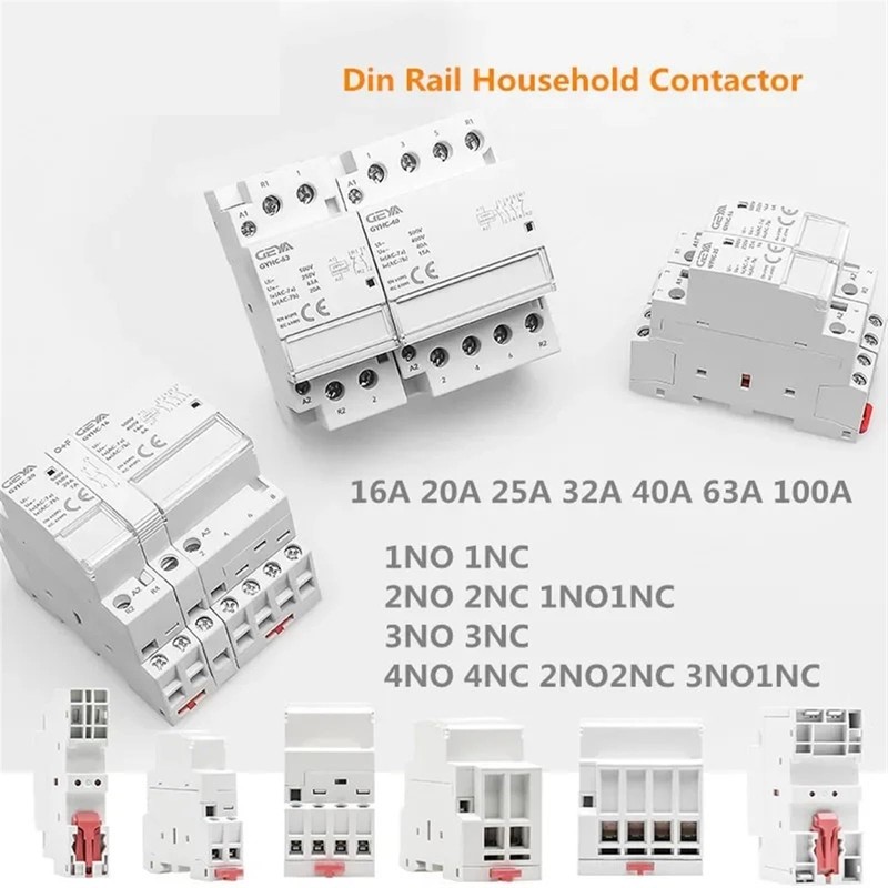 Din Rail Mounted Household Modular AC Contactor for Smart Home House Hotel AC220V 2P 16A 20A 25A 2NC 2NO 1NO1NC 50/60Hz