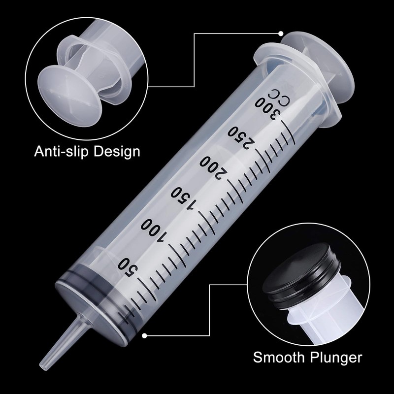 - Large Capacity: The syringe can hold up to 300 ml of liquid, and the bottle is clearly marked for accuracy and remains legible even with multiple uses.