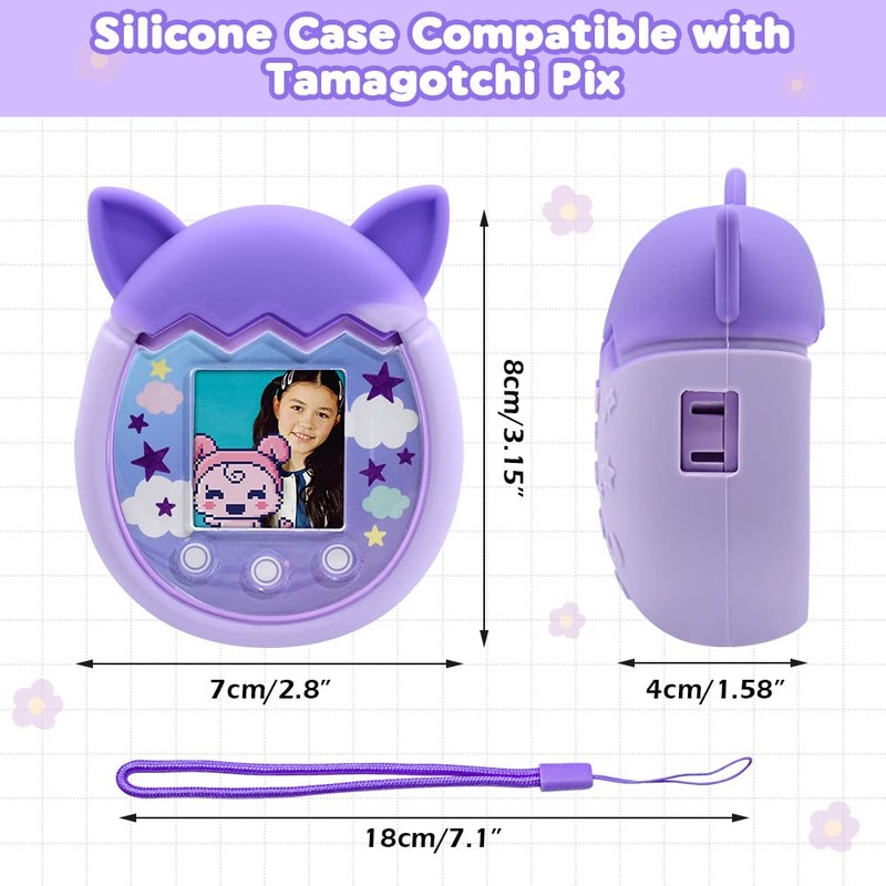 Winceed Silicone Case for Tamagotchi Pix Virtual Pet Game Machine, Protective Cover for Tamagotchi Pix Sleeve Protector Skin with Hand Strap (Purple)