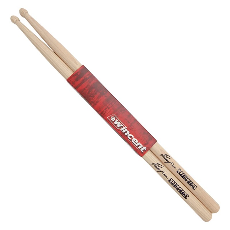 The Wincent Mikkey Dee Signature are drumsticks with a length of 410 mm and a diameter of 15.8 mm. The sticks are made of hickory wood, the tip is acorn shaped.