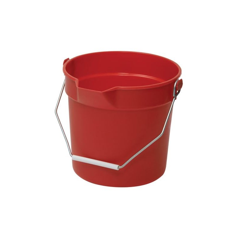 Winco Heavy-Duty Plastic Bucket/Utility Pail with Pour Spout, 10 Quart, Red