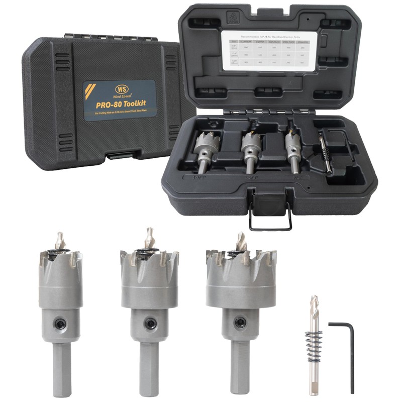 Enhance your drilling projects with the Wind Speed heavy duty hole saw kit, a versatile 3-piece set that includes 7/8, 1-1/8, and 1-3/8 inch cutters. This hole saw kit features a tough double-layer design made from durable steel material, ensuring smooth and efficient drilling through materials up to 8mm thick. The robust construction allows for reliable performance, making it perfect for heavy-duty tasks.