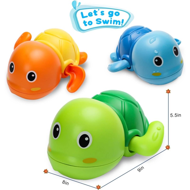 Wind Up Turtle Bath Toys 3-Pack - Swimming Bath Toys for Toddlers 1-3 Years