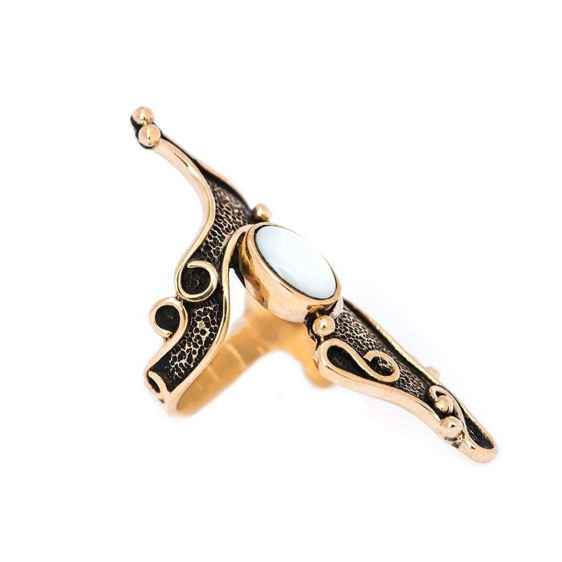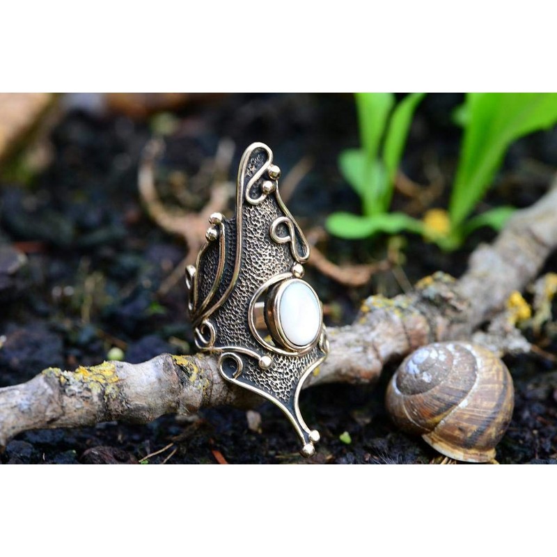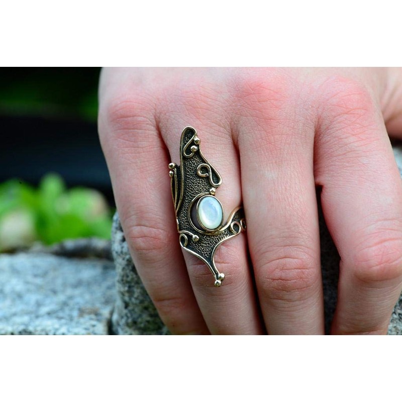 WINDALF Alania Women's Long Ring 45 mm Mother of Pearl Magic Gothic Statement Ring Bronze, Fabric, Mother of Pearl