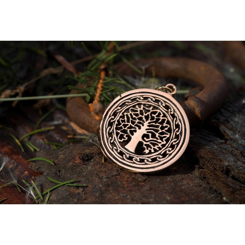 - A jewellery pendant with a powerful Celtic tree made of bronze