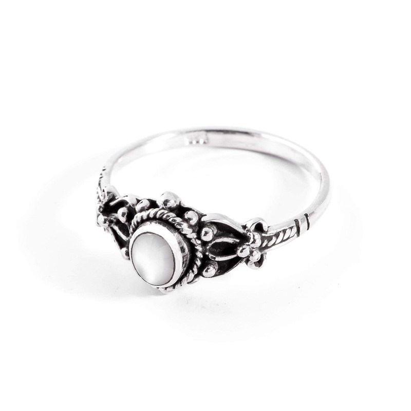 WINDALF Roxia Delicate Lucky Ring 9 mm Mother of Pearl Elves Ring Bohemian Silver Ring 925 Sterling Silver, Fabric, Mother of Pearl
