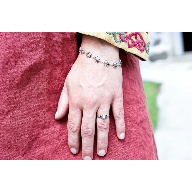 WINDALF Roxia Delicate Lucky Ring 9 mm Mother of Pearl Elves Ring Bohemian Silver Ring 925 Sterling Silver, Fabric, Mother of Pearl