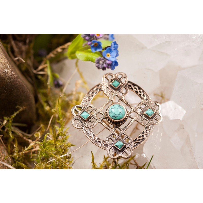 - Turquoise stones grained with fine lines give the Viking fibula its uniqueness