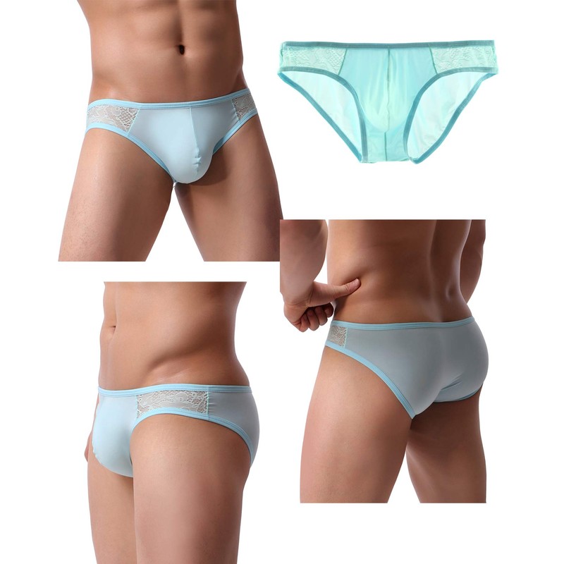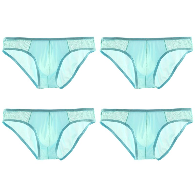 WINDAY Los hombres calzoncillos de encaje de seda de baja altura bikini calzoncillos y ropa interior transpirable B162, Paquete de 4 azul, X-Large