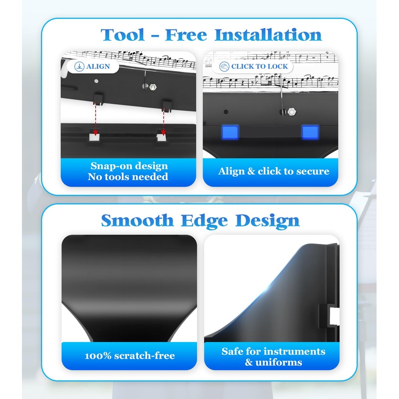 - Flip Pages in a Snap: With this lyre for clarinet, you can flip sheet music effortlessly with one hand—perfect for marching band performances; during breaks, easily attach or remove sheets without adjusting the base or disassembling the stand