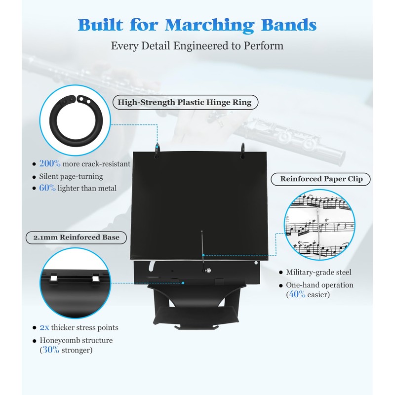 - Premium & Durable Material: This clarinet lyre and flip folder features high-strength ABS plastic with a smooth, uniform-friendly surface; includes crack-resistant plastic hinge ring (60% lighter than metal) and secure metal clips for stable performance in all conditions