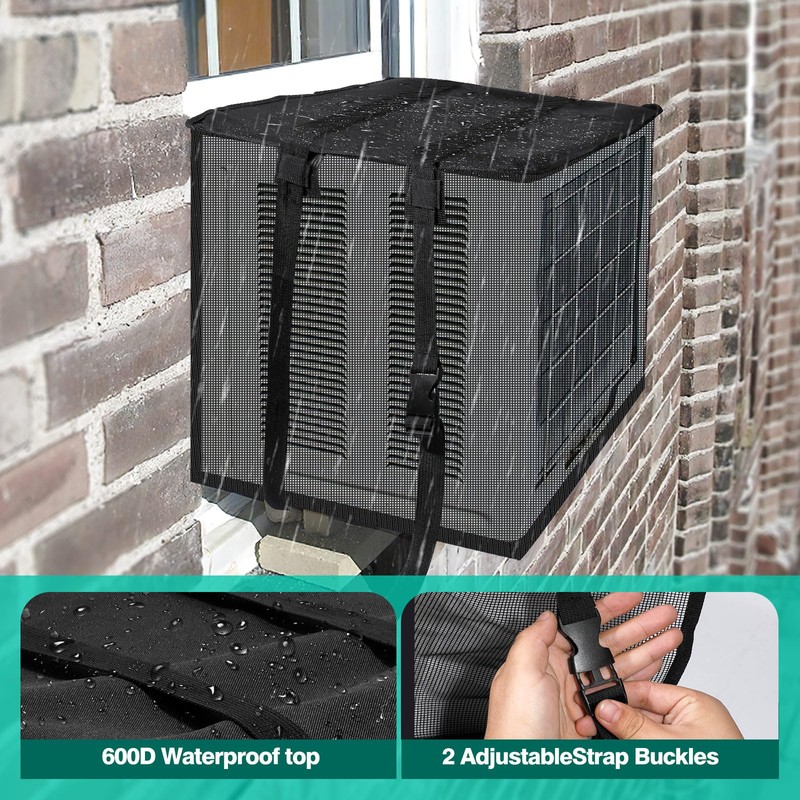 - Our ac cover is washable, sturdy, breathable, and sun-blocking, the mesh promotes air circulation, preventing bees, weedcotton and leaves from your device. The waterproof top safeguards against dust, debris, rain, and snow.Suitable for year-round use to minimize natural wear and aging of your ourside window ac unit