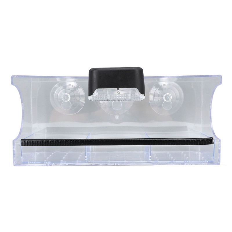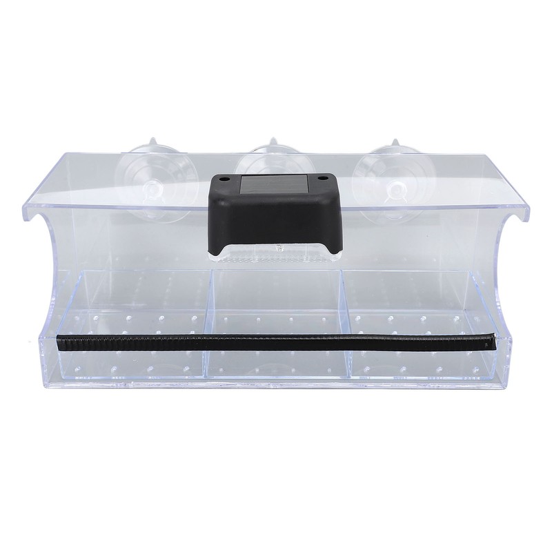 1、New Design: Window bird feeder has 3 strong suction cups. Even in rainy or windy our bird feeder window can firmly stay in place. Rectangular transparent design attracts birds for dining and enhances your outdoor scenery. You can use it all year round to attract birds. 2、Solar Powered LED Light: Clear bird feeder is equipped with solar powered LED light for clear observation of bird activities at night, providing you with entertainment. 3、Multifunctional: Rectangular clear bird feeder provides food and water for birds simultaneously, meeting their basic needs and fostering a connection with nature. 4、Easy to Clean and Install: Convenient to use, outside bird feeder allows you to easily add food or water sources, caring for your lovely little pets. 5、Durable and Sturdy: Made of durable plastic, ABS materials for long lasting use, suitable for outdoor yards, balconies, creating a cozy bird paradise.