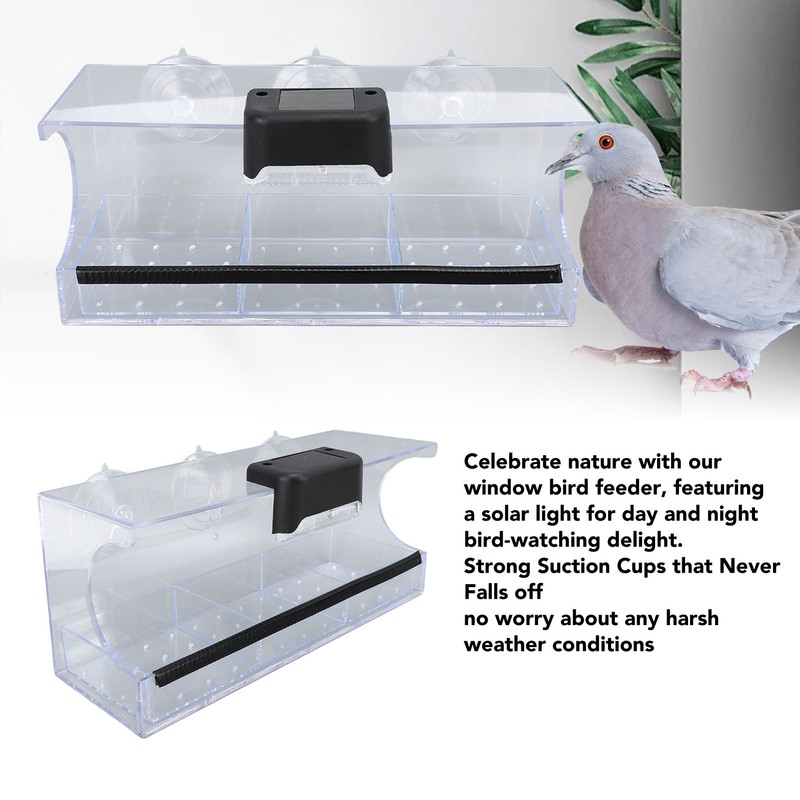 Window Bird Feeder with Solar Powered LED Light Strong Suction Cups Clear Bir...