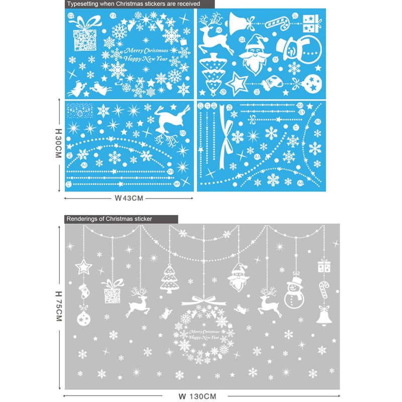 - 🎄WHAT YOU GET: Cute Santa with various postures,happiness snowman and reindeer,various size of snowflakes. Christmas windows decorations measures 30*43cm. 4 sheets in total. 98 Pcs Christmas window stickers in total.Christmas window stickers will add more happiness!