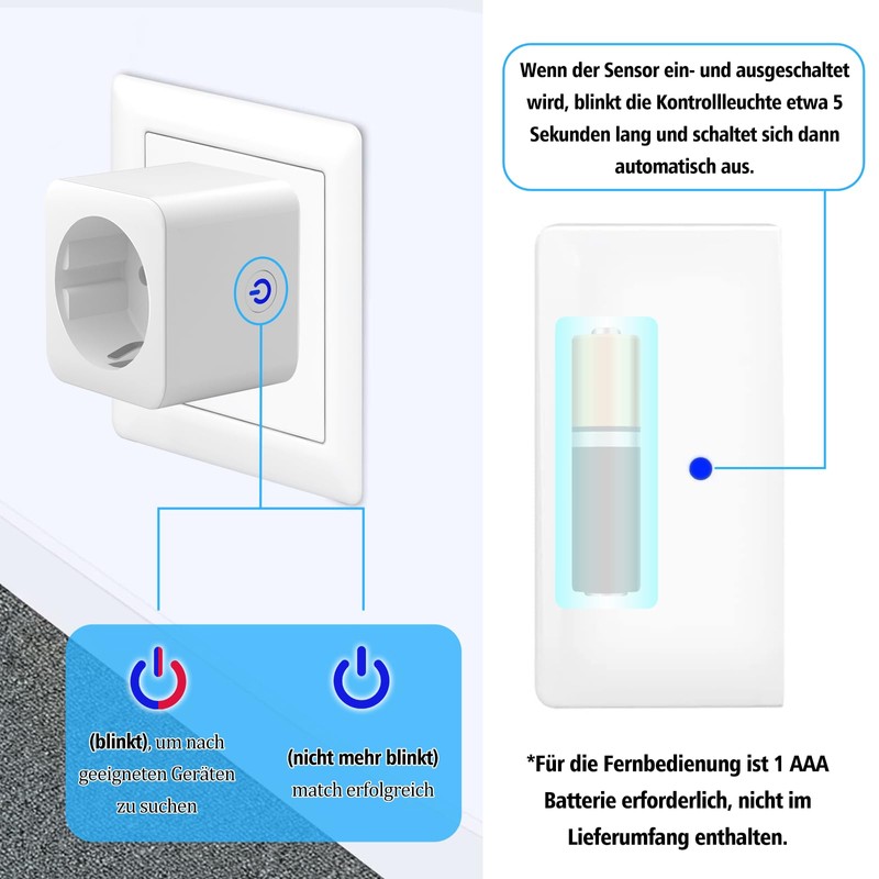 - Easy to use: the socket is suitable for the EU and FR standard. You don't have to do anything else, just place the transmitter and receiver correctly and it works immediately without having to install an app or anything else. (The radio socket and the magnetic contact switch are already paired. Note: 1 x AA battery (not included).) Please open the large sensor lid beforehand and then press the opening key on it