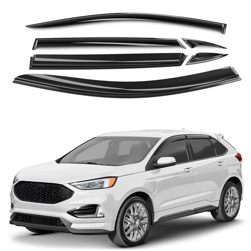 Window Deflectors Smoke Tinted Tape-On Side Window Vent Visor Deflectors Rain Guards Compatible with Ford Edge 2015-2025 - 6 pcs. GW0962