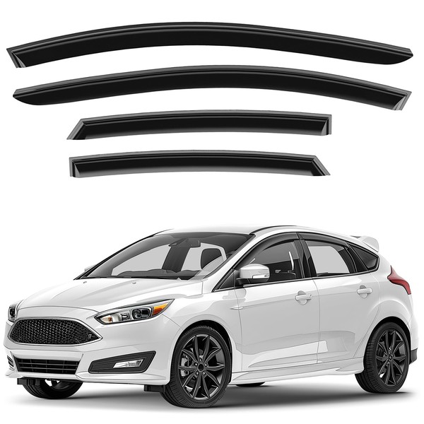 Window Deflectors Smoke Tinted Tape-On Side Window Vent Visor Deflectors Rain Guards Compatible with Ford Focus 2012-2018 Hatchback - 4pcs. GW0934