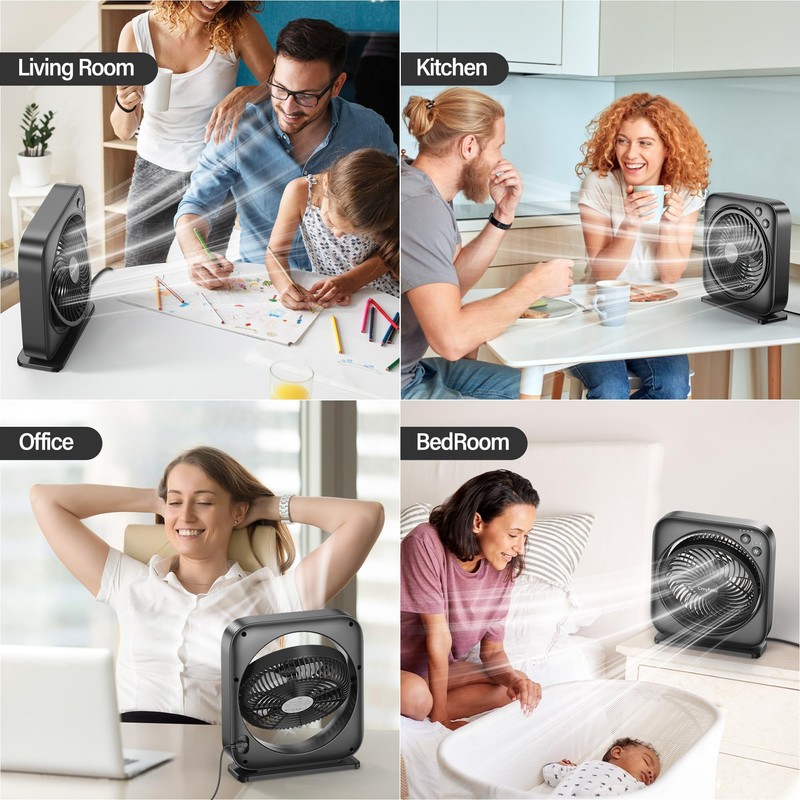 Cmyfato Portable Table fan, Window Fan,Small Box Fan with 3 Powerful Speed & 4 Timer Setting, 270° Pivoting Quiet Square DC Fan for Home Office Bedroom Bathroom Kitchen