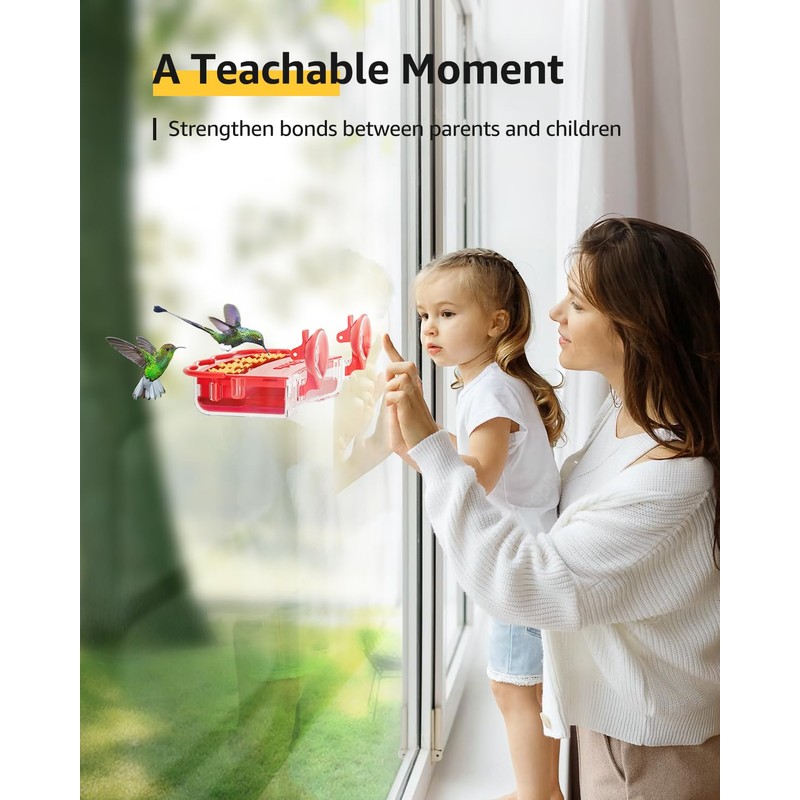 - 【Watch Hummingbirds Up Close】The window hummingbird feeder allows you to attract and observe hummingbirds up close from the comfort of your home. Whether the window of living room, bedroom or kitchen, you can easily place it wherever you like to watch hummingbirds.