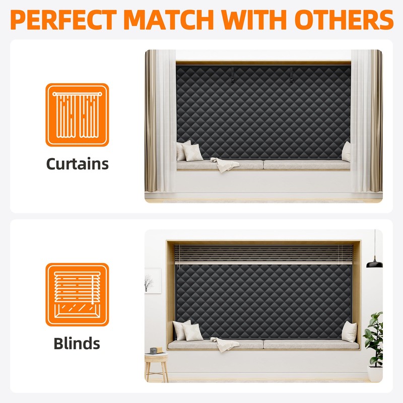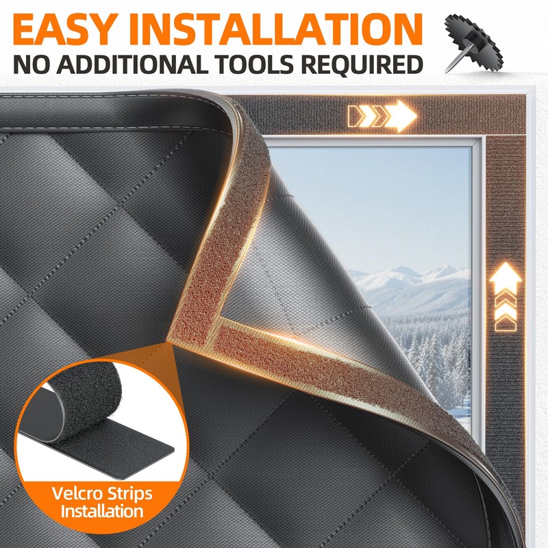- 🌬️ Keep Out the Cold Air – Made with windproof Oxford fabric and 180g thick cotton padding, this thermal curtain creates a strong blocker against cold drafts and rain. The window insulation for winter help maintain indoor warmth, reduces extra heating costs, and saves you money.