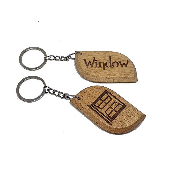 • WINDOW KEYRING KEYCHAIN WOODEN KEY FOB