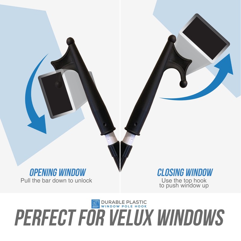 - Designed for Velux Windows, Sash Windows, Attic, Loft Hatch, and Blinds – Comes with a large window opener hook which is compatible with Velux and other brands of skylight windows for opening and closing it using the control bar. This window pole hook can also be used to maneuver attic windows, loft hatch, and blinds.