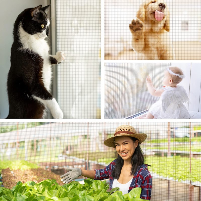 - [Effective screen door saver and Visibility]: This fiberglass window screen mesh is 16 x 18 (apertures per square inch), a moderate screen mesh density has a definite effect of protecting privacy without impeding the flow of fresh air. It strikes the right balance between sun protection and visibility, with a wide view of the room and good air circulation.