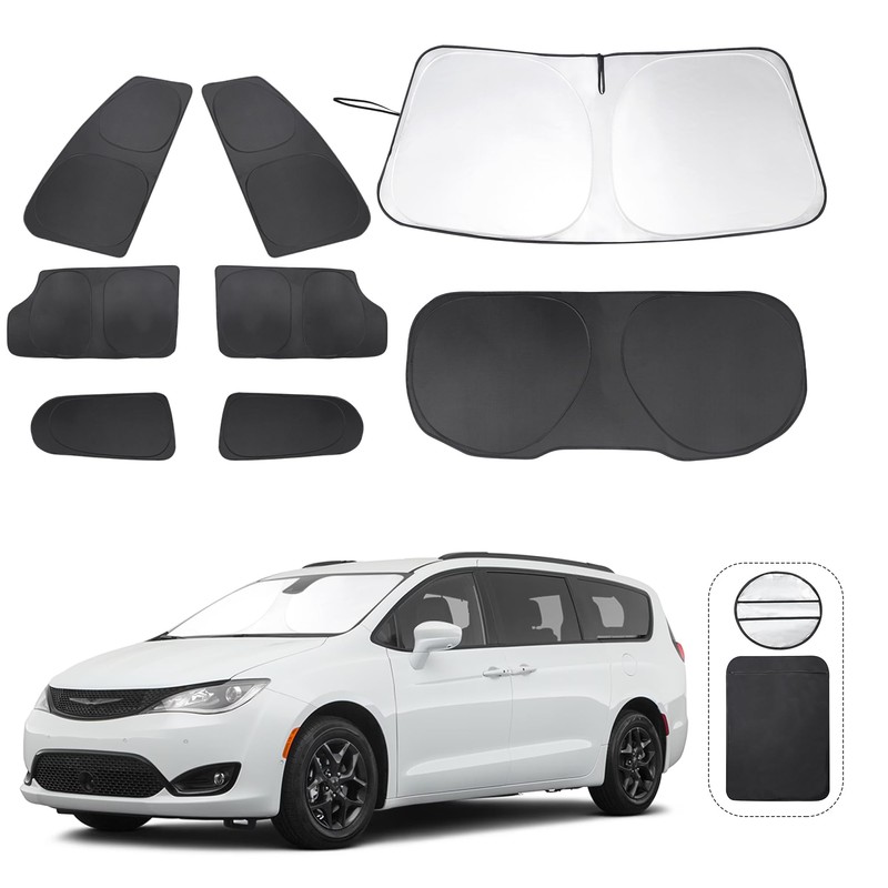 • Customized Design:The sun shade custom fit for Chrysler Pacifica Minivan 2017-2025.Our window shade is according to the car size design,perfectly fit your car and does not need to trim.windshield sun shade solve the problem of light leakage and incompatibility of the old umbrellas.The sunshade designed for Chrysler Pacifica Minivan 2017-2025.