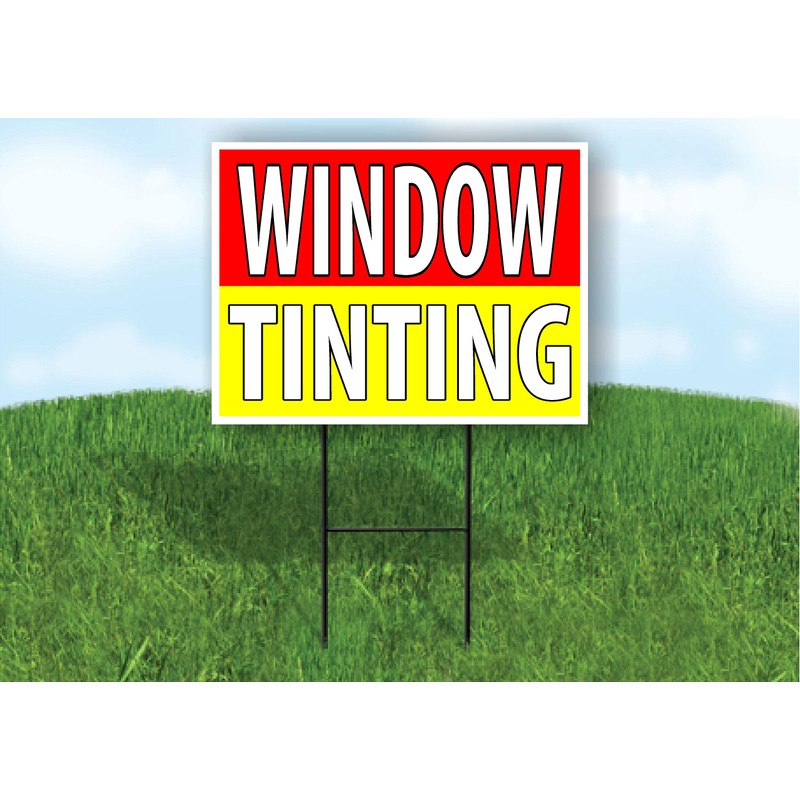 WINDOW TINTING RED - Single Sided YELLOW Yard Sign ROAD SIGN with Stand