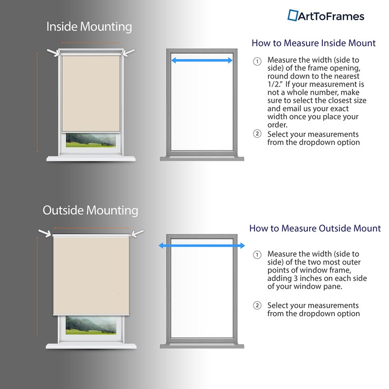 - Our Roller Shades can be mounted via an inside OR outside mount. Please see description below for detailed instructions on how to measure your window.