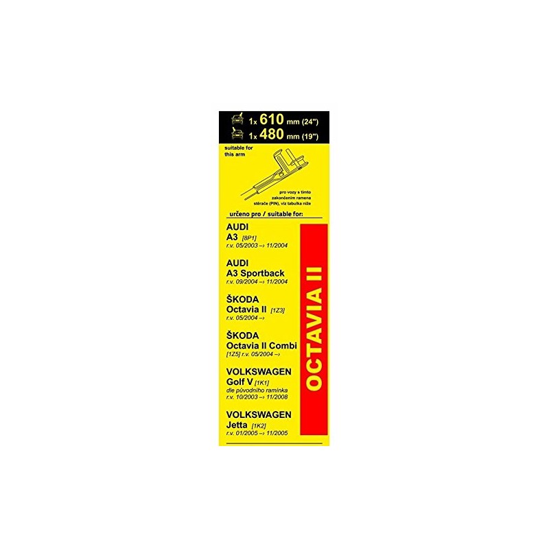 - Windscreen wipers flat set Skoda Octavia II (1Z3) (5.2004) (pin) 610 + 480 mm