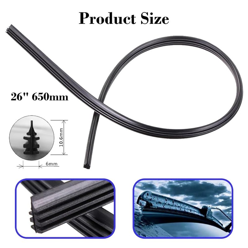 - Size: the size of the wiper blade is 26 inches/650 mm, the diameter is 6 mm, you can cut it freely, the package contains a total of 8 wiper blades, enough to meet your daily replacement needs (only windscreen wiper rubber, windscreen wiper not included).