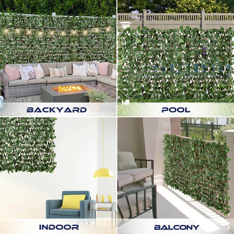 - HIGH QUALITY MATERIAL - Our expandable fence screen is made of real woods with artificial leaves. Leaves are made with UV stabilized polyethylene material so it’s sunlight and water-resistant.