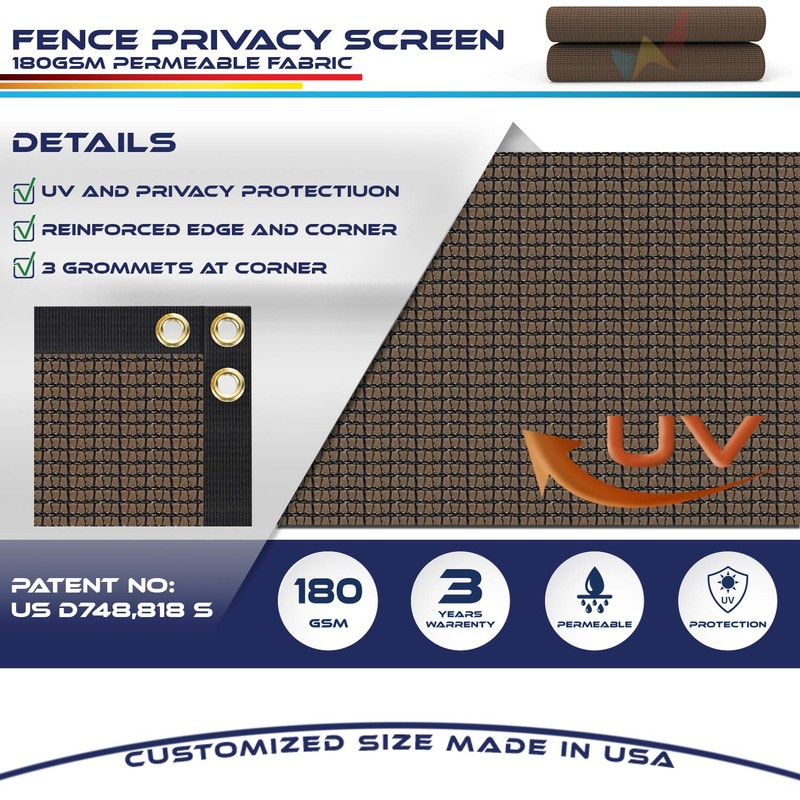 Windscreen4less Heavy Duty Privacy Screen Fence 98% Blockage Solid Brown 6'x17' Brass Grommets w/3-Year Warranty 180 GSM