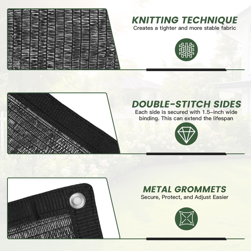 • HEAVY DUTY: Made of High-Density Polyethylene (HDPE) material, our shade cloth is extra durable and highly resistant to tears, UV rays, wind, and temperature impacts.