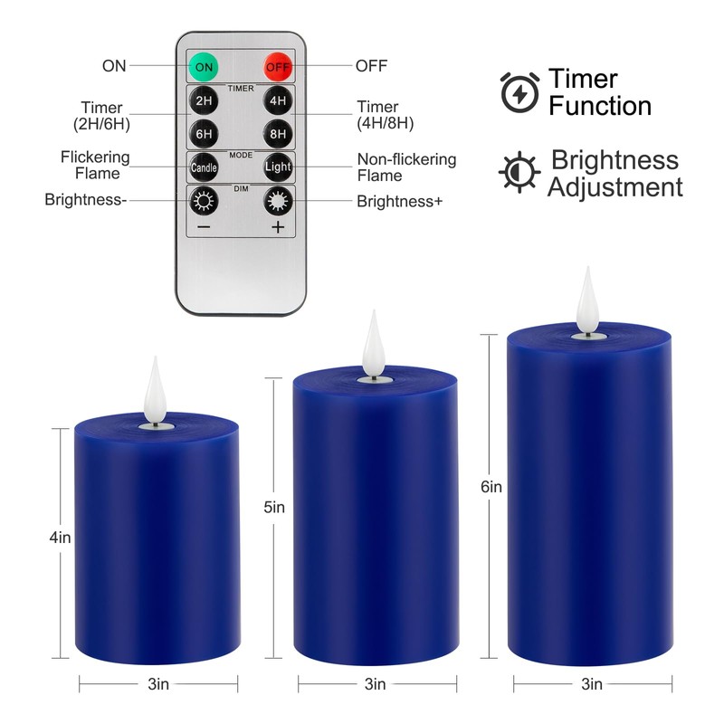 - [ Safe LED Flameless Candles ] - made of real wax (avoid using in high temperature area), no smoke, no fire rise, safe for your home and family (Important Notes: the candle body color is similar to royal blue, please watch the pictures on the page carefully before you buy)