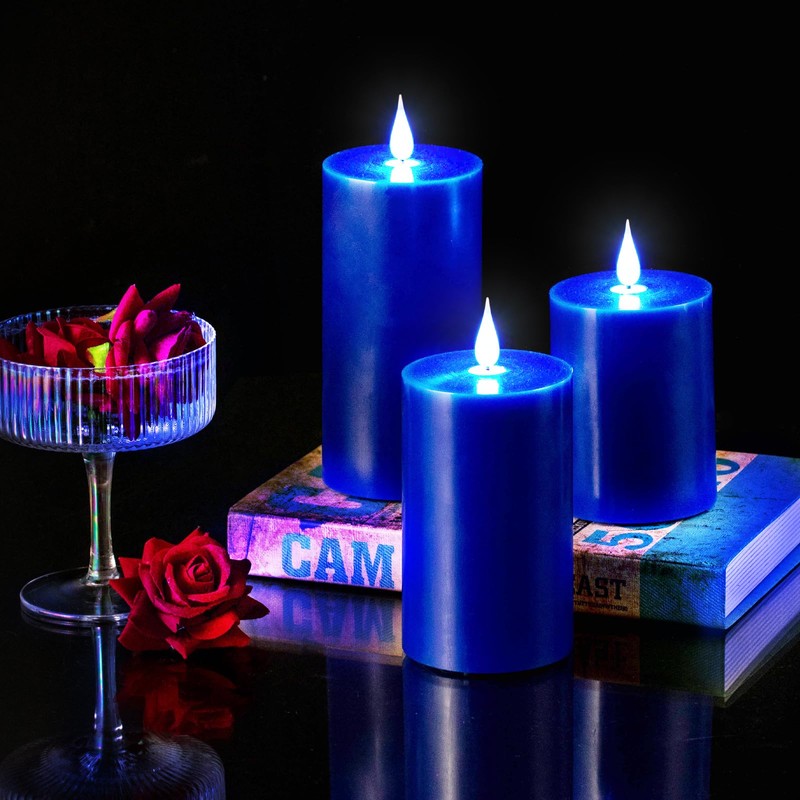 - [ Real Blue Flame Candles ] - the blue candles not only have blue pillar body, but also have blue LED Light Source, therefore the flame color is also blue, great for party, wedding, Christmas and Halloween decoration (Important Notes: the flame color is blue, not white)