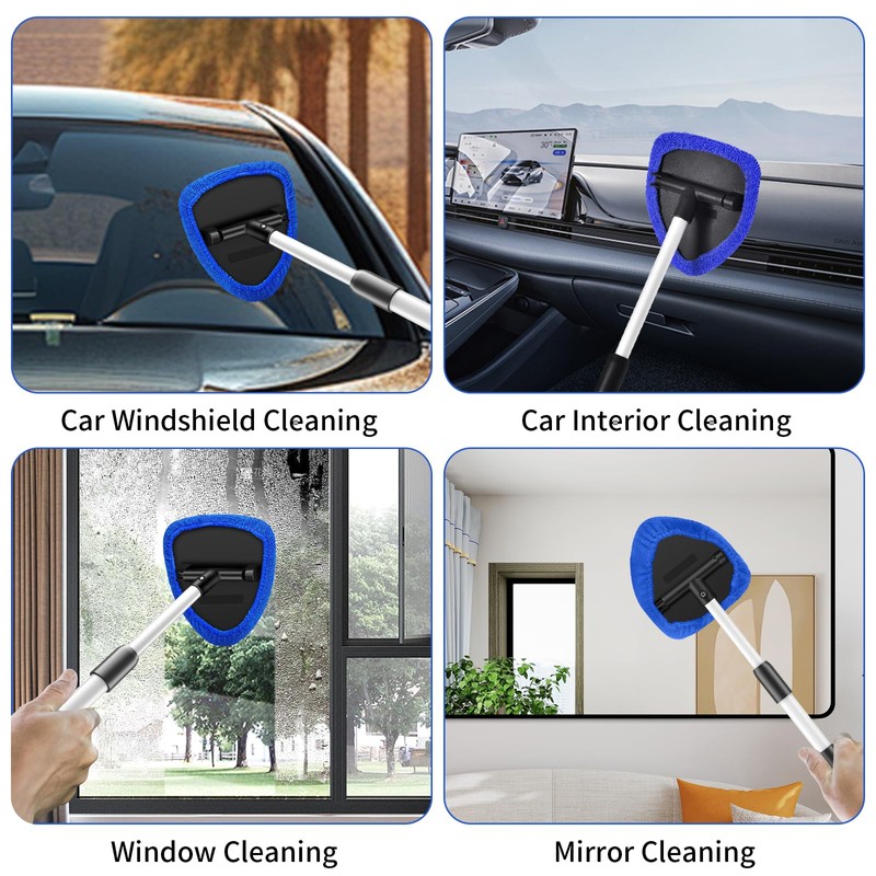 - Great Design: The car window cleaner boasts a durable and ergonomic handle that extends easily to reach window bases, ensuring thorough cleaning. It comes with a washable microfiber pad that absorbs water well.