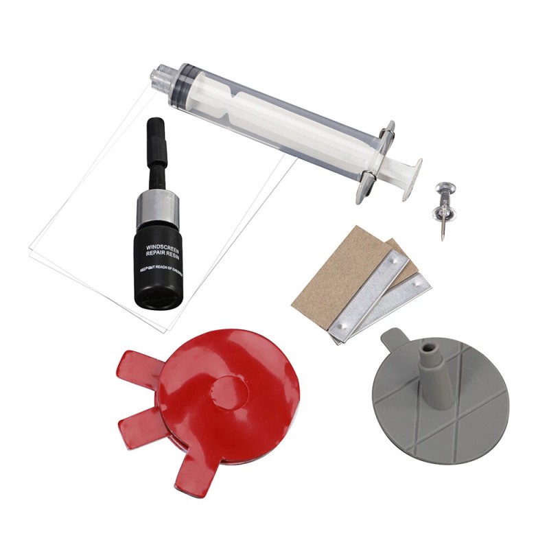 DIY windshield repair kit is designed to fill the air cavity with a strong penetrating adhesive that will bond the loose glass and restore the visibility.