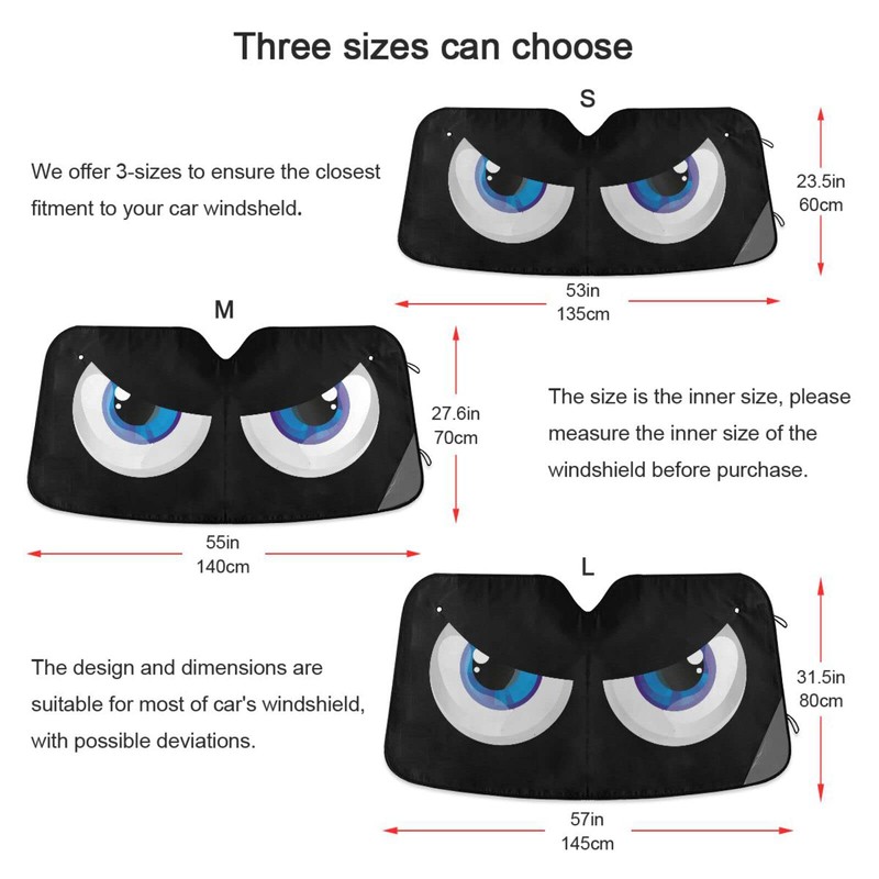 Windshield Sun Shade Cartoon Eyes Sun Visor Foldable Sunshades Protector Blocks UV Rays Keep Your Vehicle Cool Fit Car Truck SUV, 53x23.5in