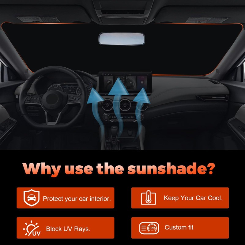 - 【Keep Your Car Cool】Engineered with a silver coating to reflect heat to reduce heat buildup up to 40°Fit will block 99% of damaging UV rays. Keep your car cooler and help to protect leather seats from cracking and fading.