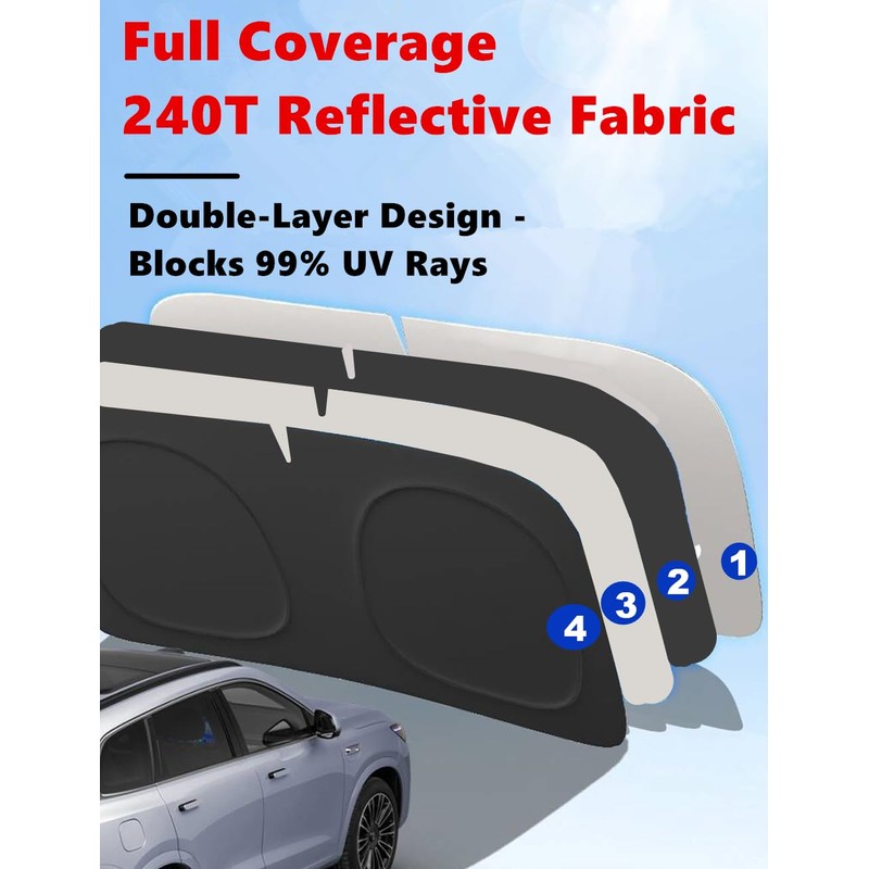 - Protecting your interior electronics with a quality windshield sunshade is a must during the summer heat. Effective sun protection The car heat blocker is made of high-quality composite titanium-silver cloth, which has good heat insulation and a high refractive index, allowing a significantly low surface temperature.