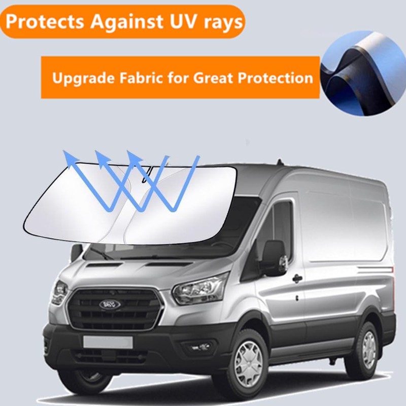 - Compatible with :Windshield Sunshade Designed for 2022-2024 2025 Ford E-Transit: covering all the edges and corners to fully block all sunlight through the windshield, can effectively act as a protective shield for you and your car’s interiors from harmful UV rays.