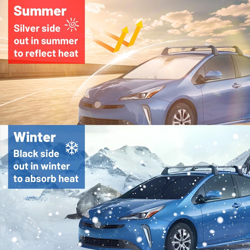• Heat Reduction Science: Double-sided thermal tech. Silver reflects 99% heat, Custom Car windshield sun shade keeps cabin 30°F cooler than cheap shades