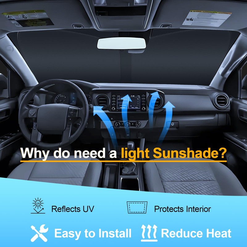 - 【Enhanced Sun Protection】This custom-fit sunshade is essential for a comfortable drive. It blocks 99.79% of sunlight and UV rays, protecting you and your family during car travel or naps.